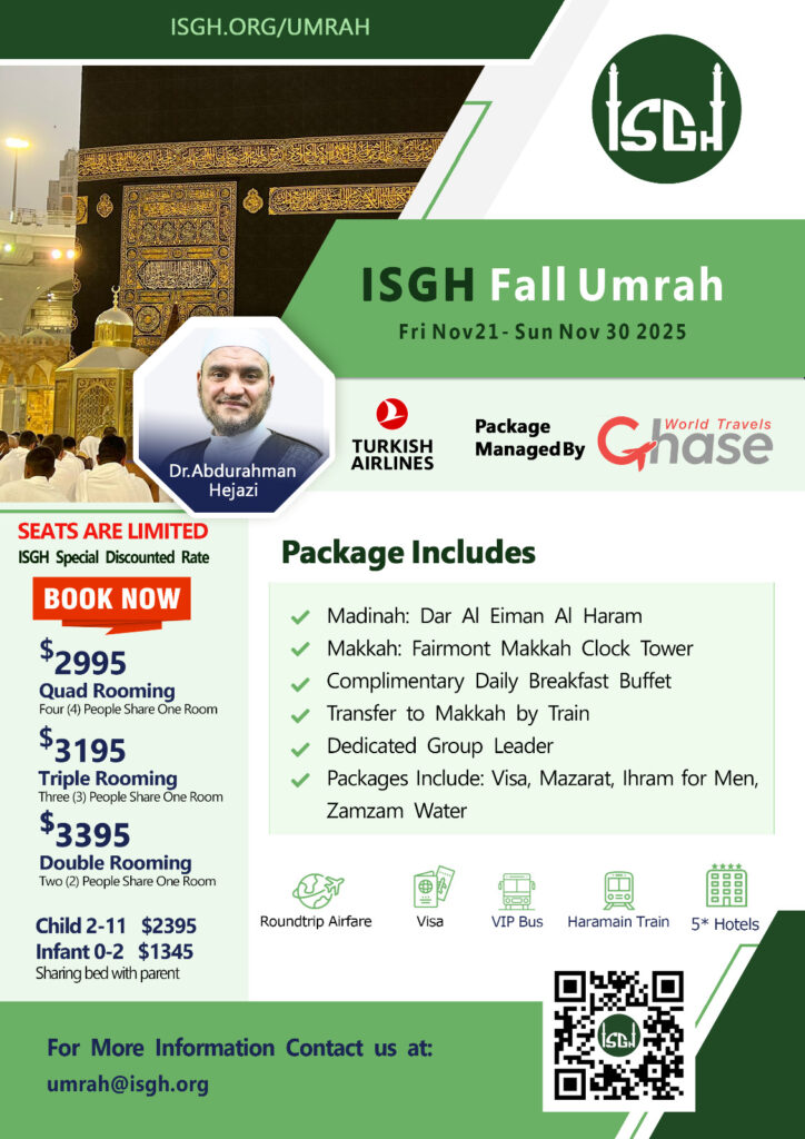The Islamic Society of Greater Houston (ISGH) is excited to announce the ISGH Fall Umrah 2025 Trip.